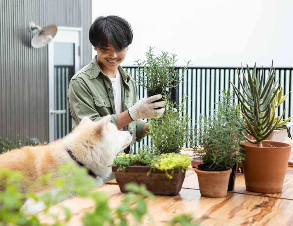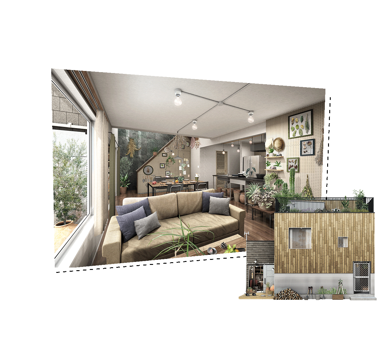屋上に、とびきり開放的なバルコニーをプラス。見上げれば青空が広がり、周囲の視線も気になりません。大きめのグリーンをたくさん置いても、のびのびと日光浴をさせてあげられます。